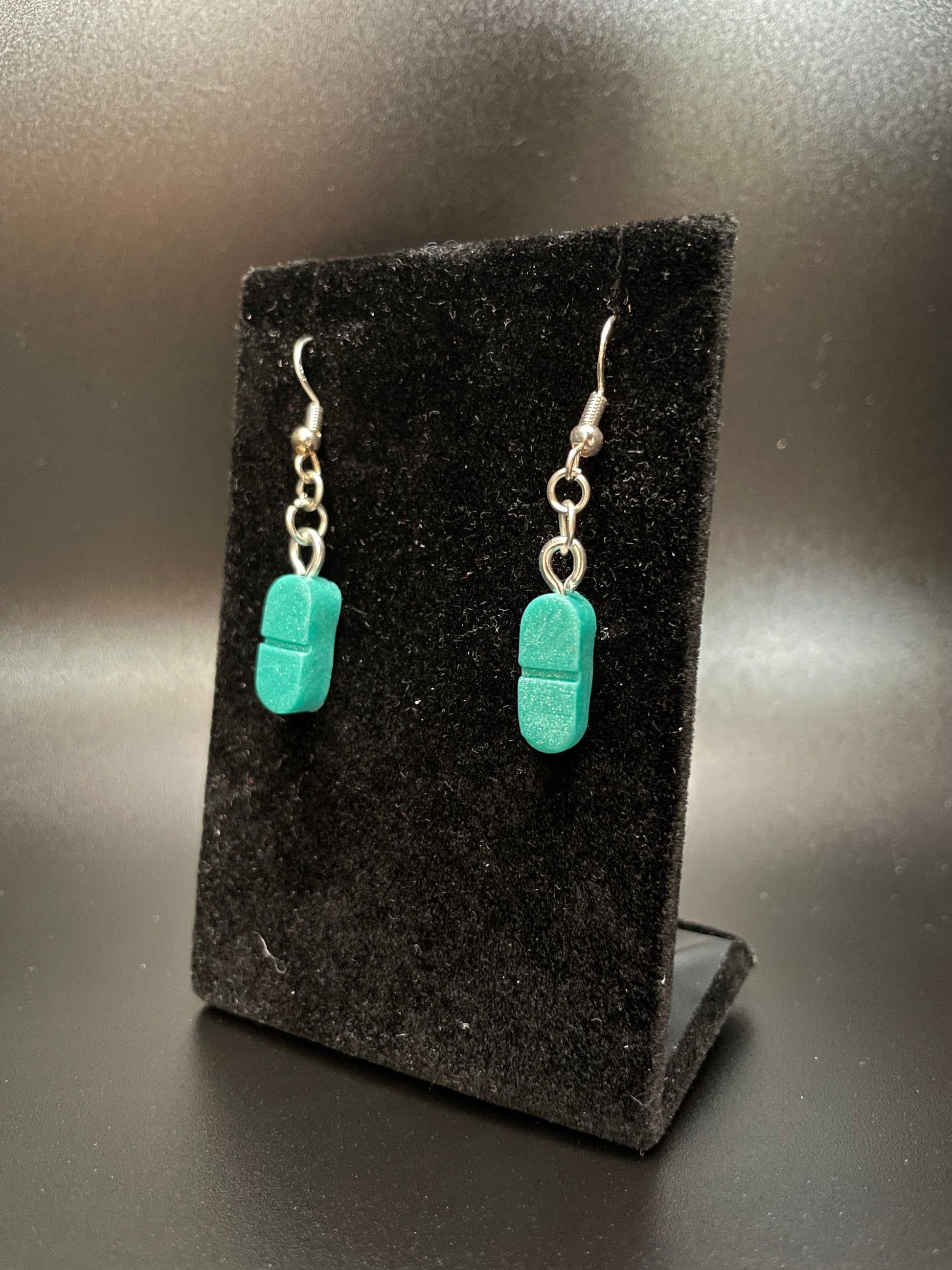 Add a dose of personality to your look with these Handmade Oblong Tablet Dangle Earrings! Sculpted from polymer clay to resemble classic oblong medicine tablets, each earring is smooth, lightweight, and full of character. The clean, minimalist shape gives these earrings a subtle science-inspired vibe that’s perfect for everyday wear or as a playful nod to your career in healthcare.